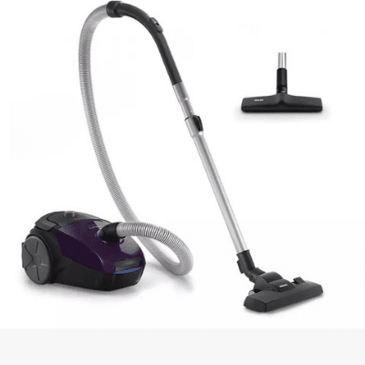 Aspirateur Philips fc8295 dans un étui noir et bleu semble mignon et attrayant. Le collecteur de poussière modèle est un sac de 1.5 litres. Sur le corps de l’aspirateur se trouve un régulateur de puissance. La puissance d’aspiration de la poussière par l’appareil est de 300 W. La portée du modèle est de 9 m, et se plie d’un long tube télescopique et d’un cordon de 6 mètres.