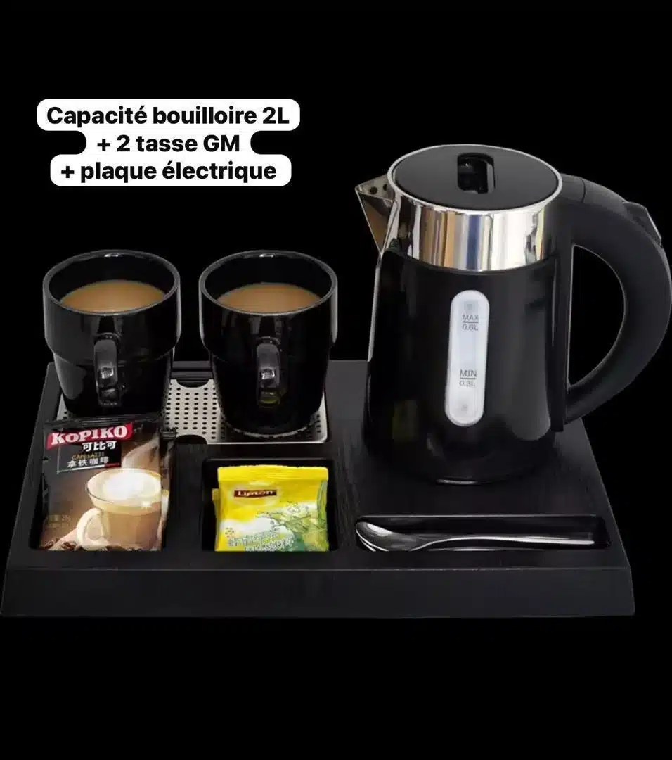 Bouilloire électrique portable en acier inoxydable 2L avec 2 tasses et arrêt automatique