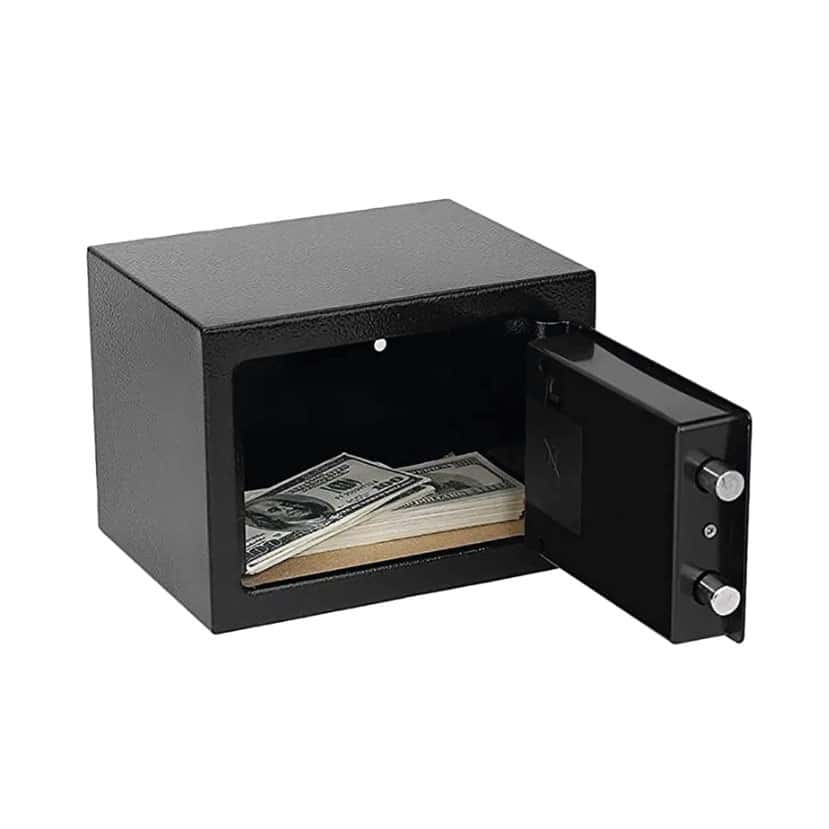 Gardez vos objets de valeur en sécurité à la maison ou au bureau grâce à ce coffre-fort numérique ultra-résistant et durable qui protège vos effets personnels tels que les téléphones, les tablettes, les passeports, l’argent, les bijoux, les clés et autres objets de valeur. Vous n’avez pas à vous soucier de la sécurité de vos objets à l’intérieur des parois en acier massif de 2 mm d’épaisseur de ce coffre-fort, car elles ont été conçues pour rester solides et durables, ainsi que la porte qui a une épaisseur de 4 mm pour plus de sécurité.