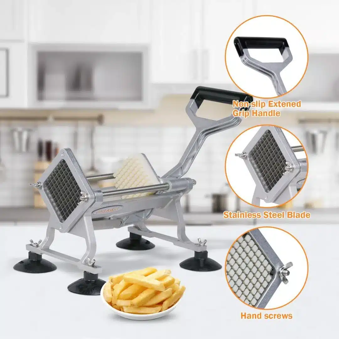 Le Coupe-frites extra robuste en acier inoxydable est conçu pour simplifier la préparation de vos frites à la maison ou en cuisine professionnelle. Grâce à sa structure solide en acier inoxydable, il résiste à une utilisation intensive et assure une découpe nette et uniforme des pommes de terre.