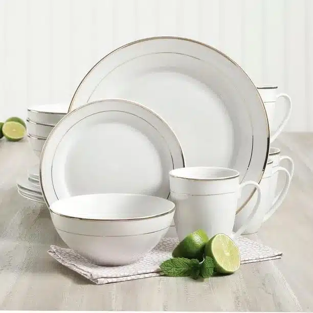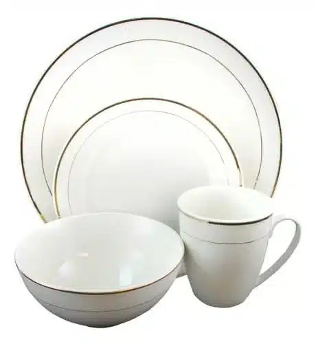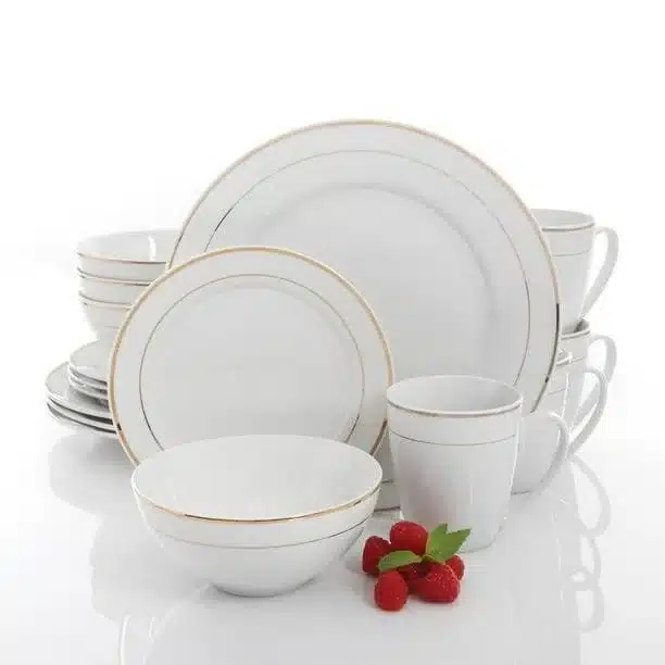 Ensemble assiette 16pcs blanc avec fil doré en porcelaine
