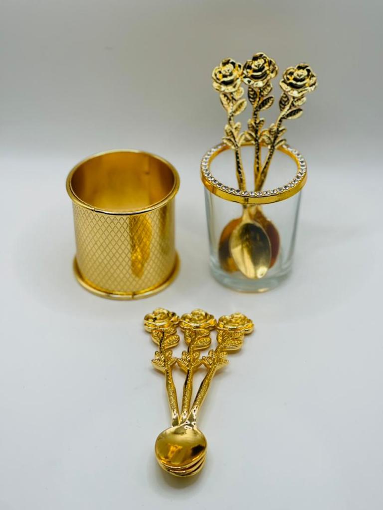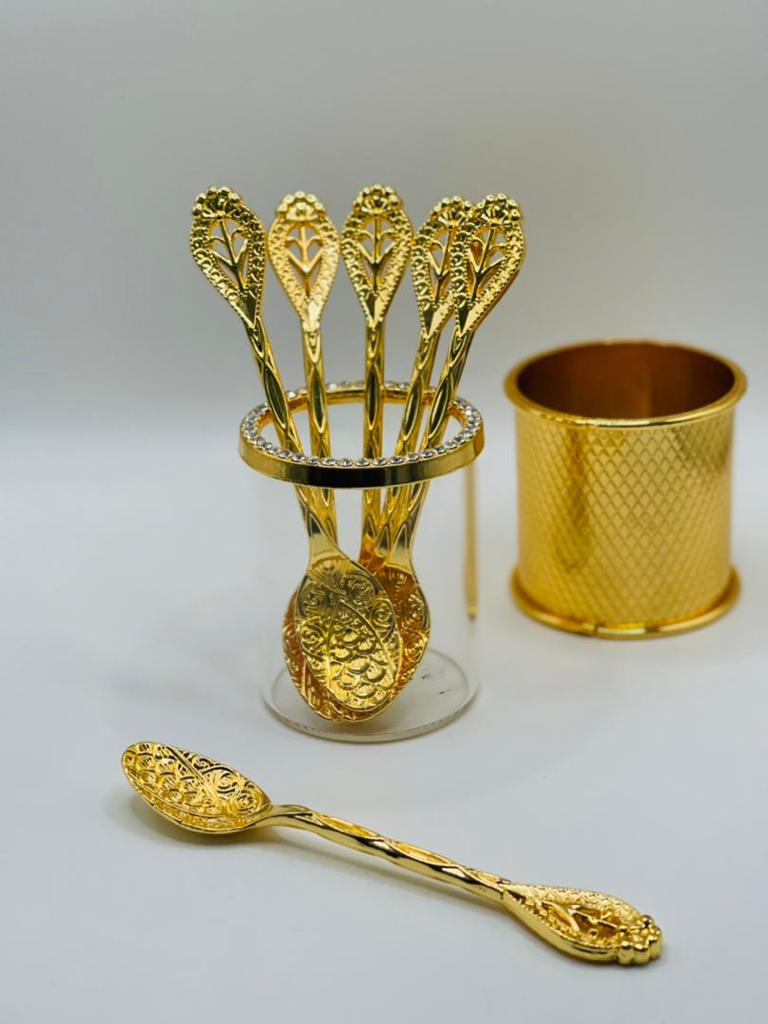 Ensemble Cuillère a Café Dore 6 Pieces et 1 Pot