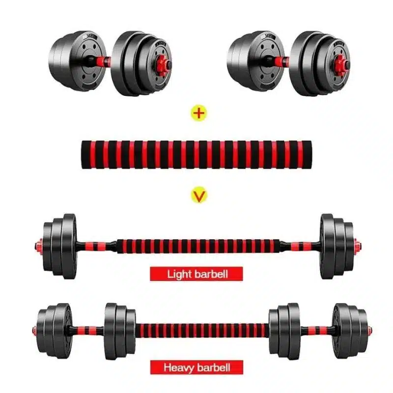 L’ensemble d’haltères 30 kg avec barre de connecteur est conçu pour offrir un entraînement complet à domicile sans encombrement. Grâce à son système de connexion robuste, vous pouvez facilement passer du mode haltères individuels à une barre longue, idéale pour le développé couché, le squat, le curl biceps ou le rowing. Les disques sont fabriqués en matériau résistant (plastique renforcé ou fonte selon modèle), remplis de sable ou ciment compacté, garantissant sécurité et longévité. Les poignées sont antidérapantes pour une prise en main confortable, même lors des séances intensives.