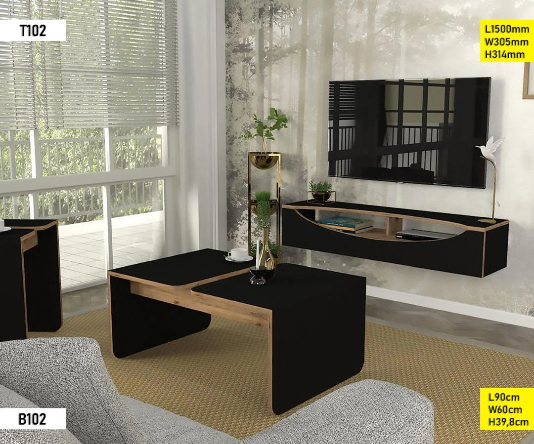 L’ensemble meuble TV T102 + B102 est une solution idéale pour aménager un salon moderne et organisé. Conçu avec un design élégant et fonctionnel, cet ensemble permet d’accueillir votre téléviseur tout en offrant des espaces de rangement pratiques pour vos équipements multimédias.