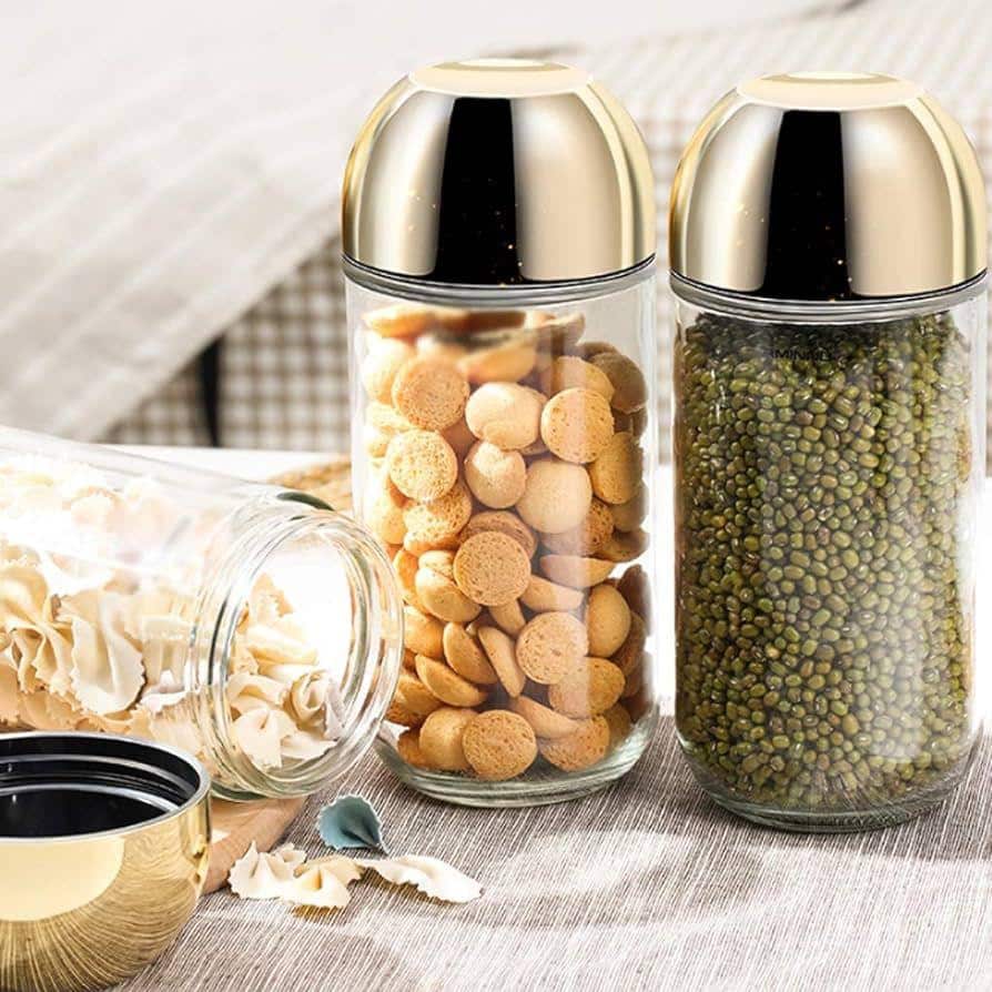 Ensemble Pot en Verre 3 Pieces avec Couvercle Doré