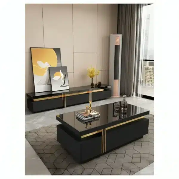 L’ensemble 6316 comprend une table basse et une table TV assorties avec une élégante finition noire. Parfait pour un salon contemporain, il combine design moderne et fonctionnalité. Solide et stylé, il complète harmonieusement votre espace intérieur.