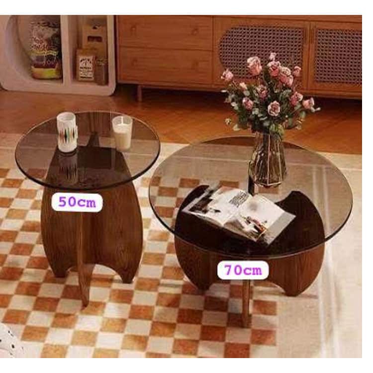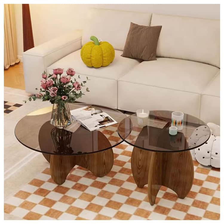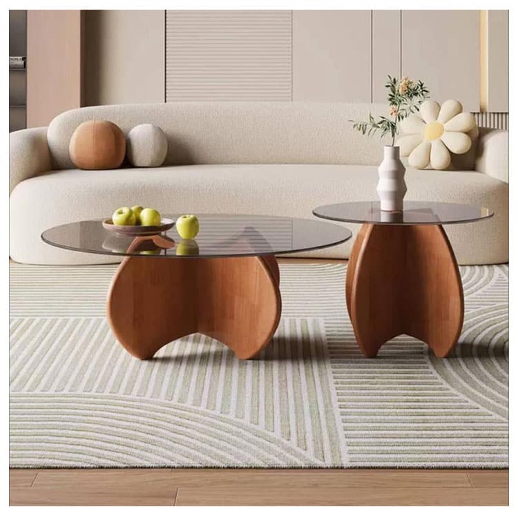 Ensemble Table Basse 2 Pièces En Verre Support En Bois Massif