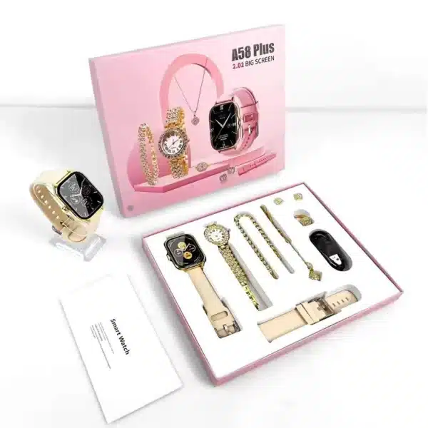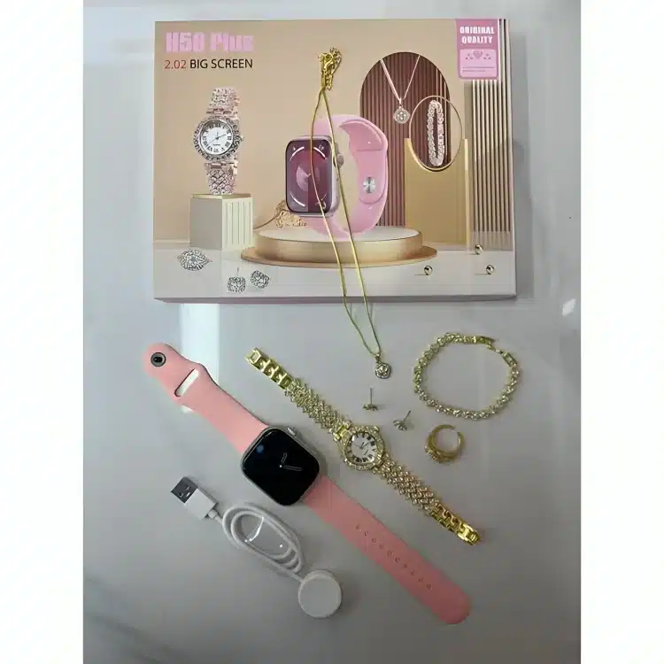 L’ensemble Watch H58 Plus pour femme offre un design chic et élégant, parfait pour toutes les occasions. Il inclut une montre intelligente avec un écran tactile haute définition, idéale pour suivre les activités physiques, la fréquence cardiaque et le sommeil. Son bracelet confortable et réglable s’adapte à toutes les tailles de poignet. La montre permet également de recevoir des notifications et des appels directement sur le poignet.