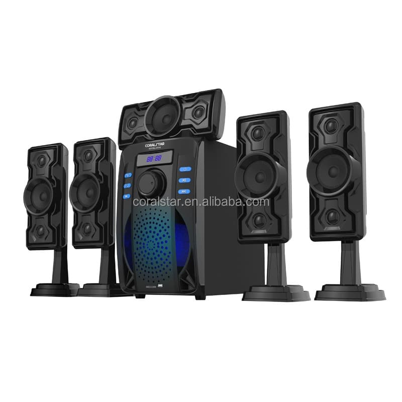 Plongez dans l’univers du son Surround 5.1 canaux. Sortez le pop-corn, détendez-vous et préparez-vous à plonger au cœur de l’action avec les systèmes Home Cinema coralstar. Le système 5.1 coralstar est un acoustique provenant de 5 enceintes satellites et d’un subwoofer avec lecteur multimédia intégré.