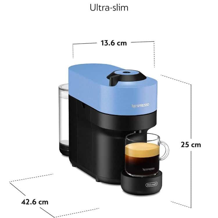La machine à café Nespresso De’Longhi Vertuo Bleu ENV90-A est un appareil élégant et compact, idéal pour savourer un café de qualité barista à la maison. Grâce à son système innovant Vertuo, elle prépare différentes tailles de boissons, de l’expresso au grand mug, avec une crème onctueuse et riche en arômes. Facile à utiliser, elle fonctionne avec un simple bouton et éjecte automatiquement la capsule après usage. Dotée de connectivité Bluetooth® et Wi-Fi, elle bénéficie de mises à jour automatiques pour une performance optimale. Fabriquée à partir de 35 % de plastique recyclé, elle allie style, praticité et engagement écologique.