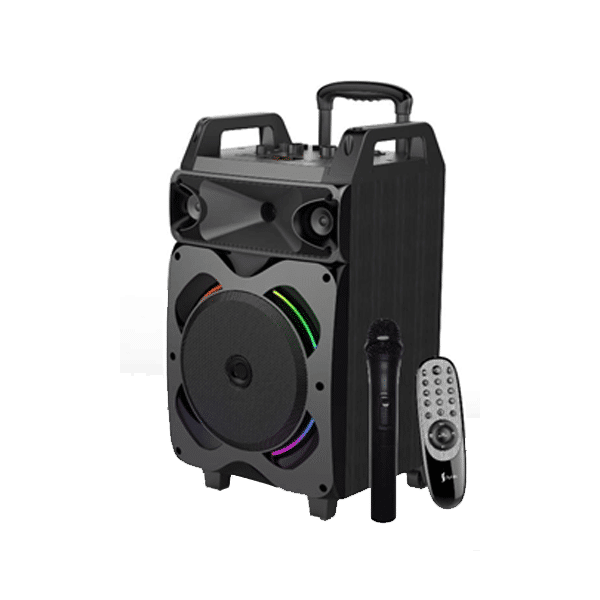 Fonction : SD/MMC, USB, FM, AUX, télécommande, BT, affichage LED Avec 1 microphone sans fil avec lumières LED.