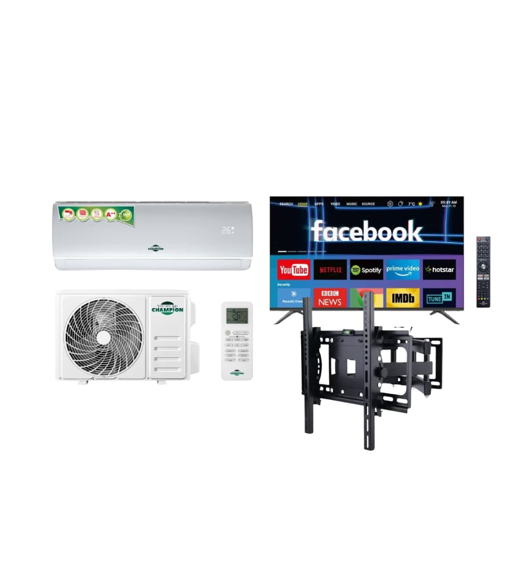 Optez pour un pack Champion performant et complet, pensé pour offrir refroidissement puissant, divertissement intelligent et installation TV optimisée.
