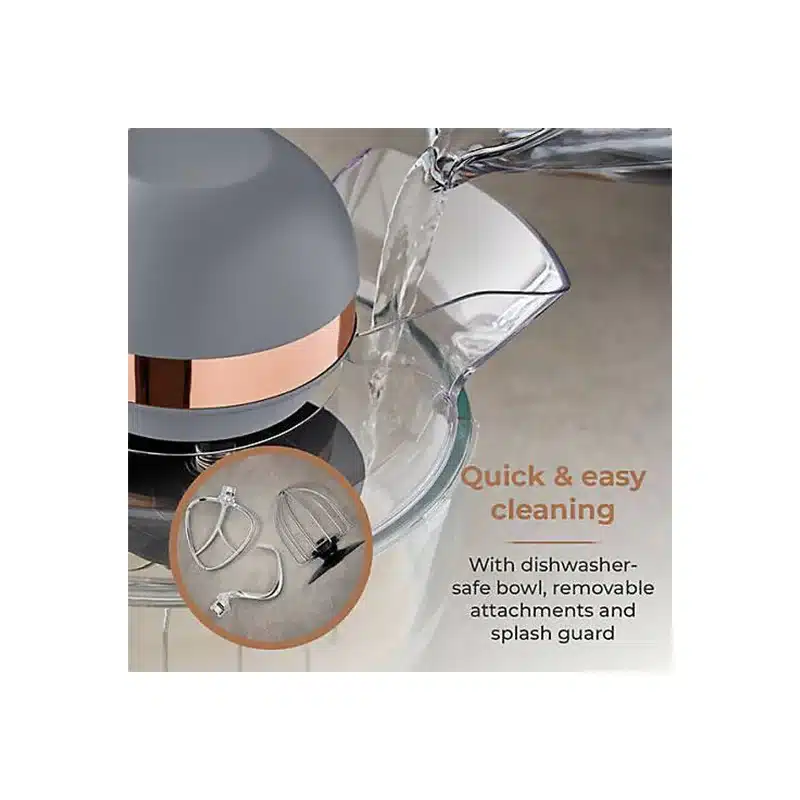 Ce Bol mélangeur à 6 vitesses est un excellent ajout à votre cuisine pour simplifier vos tâches quotidiennes. Créez facilement une meringue ou une crème fouettée moelleuse pour de délicieux desserts lorsque vous utilisez le batteur à fouet de votre batteur sur socle. Fini l’effort de pétrir la pâte ! Utilisez simplement le crochet pétrisseur et laissez votre mélangeur s’occuper de préparer la pâte pour un pain fait maison.