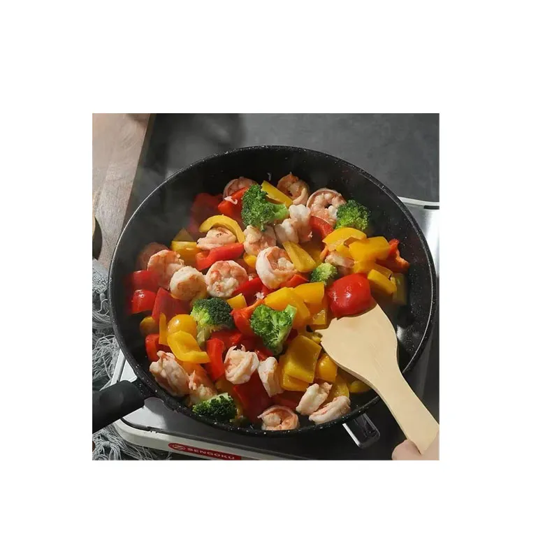 La poêle avec poignée en plastique est un ustensile de cuisine pratique et léger, conçu pour offrir une prise en main confortable et sécurisée grâce à sa poignée en plastique, qui reste froide pendant la cuisson. Idéale pour une utilisation quotidienne, cette poêle est souvent fabriquée avec des matériaux comme l’aluminium ou l’acier inoxydable, et elle peut être dotée d’un revêtement antiadhésif pour faciliter la cuisson et le nettoyage. La poignée en plastique, résistante à la chaleur, permet de manipuler la poêle en toute sécurité sans risquer de se brûler, ce qui en fait un choix populaire pour les cuisiniers amateurs et professionnels.