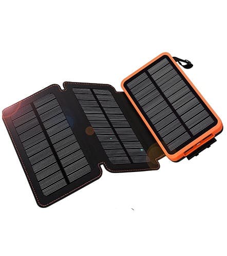Chargeur solaire 10000mAh avec beaucoup de puissance pour répondre à votre charge d’une semaine pour votre téléphone. Batterie Externe Solaire 3 Panneau Pliable Portable Universel 10000mAh avec 2 USB Ports pour Téléphone Smartphone iPhone Android et Plus d’appareils Mieux pour Les Personnes qui Voyagent en Camping et en Randonnée.
