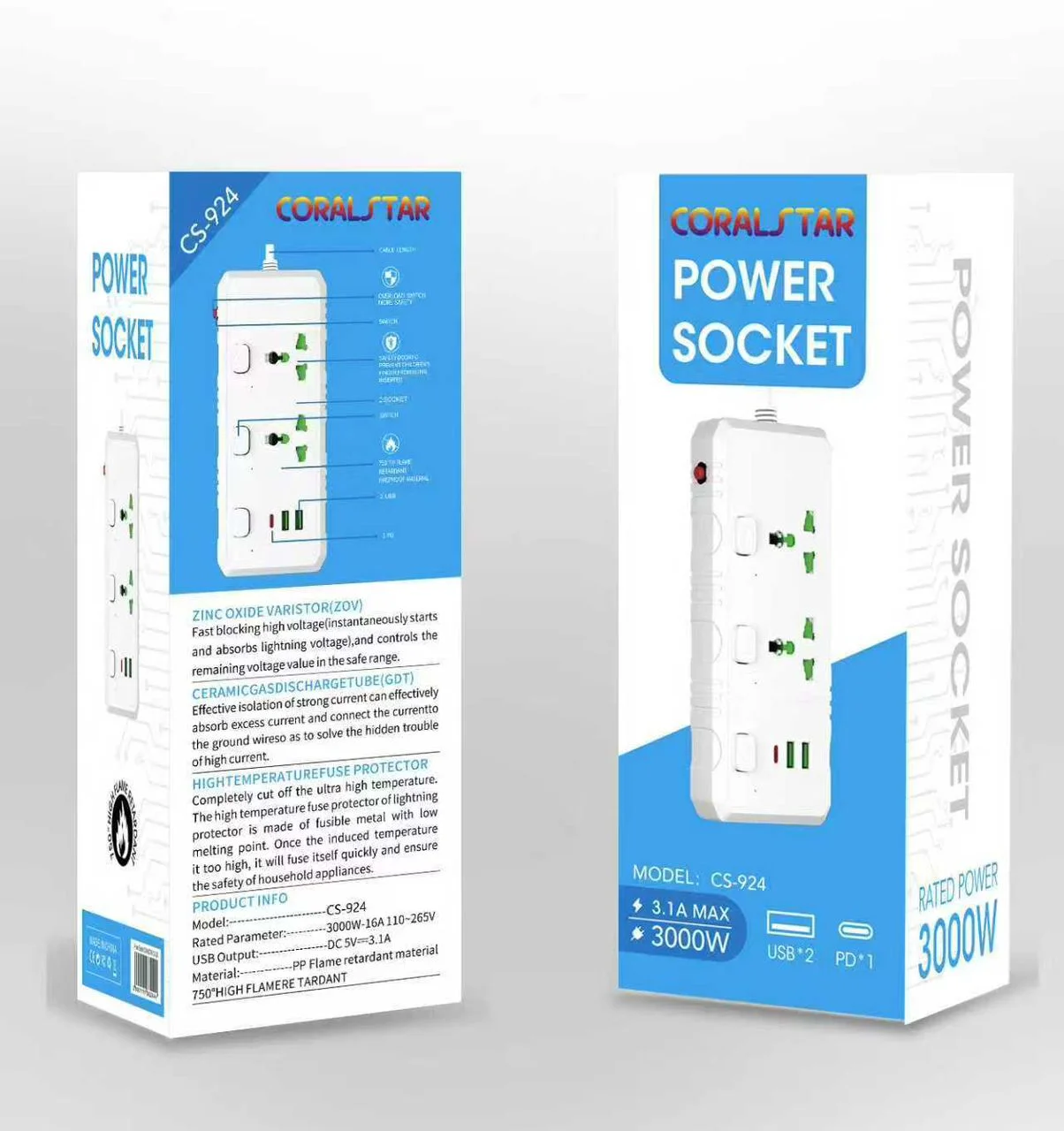 La rallonge multiprise Coralstar CS-924 est une solution pratique pour brancher plusieurs appareils électriques en toute sécurité. Elle permet d’alimenter différents équipements comme téléviseur, ordinateur, chargeurs de téléphone, appareils électroménagers ou accessoires électroniques. Grâce à sa puissance maximale de 3000W, elle peut supporter plusieurs appareils en même temps. Elle est également équipée de ports USB et USB-C permettant de charger directement les smartphones, tablettes et autres appareils sans adaptateur.
