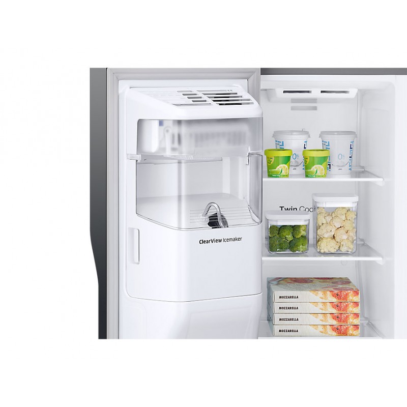 Avec le nouveau RS554, c’est ce que vous ne voyez pas qui révèle une touche de beauté épurée dans votre maison. Les poignées encastrées et les charnières dissimulées apportent une touche d’élégance et de minimalisme qui se fond parfaitement dans tout décor moderne. Le réfrigérateur offre tant de choses à admirer, du design de motifs sophistiqué (disponible en Shiny River White ou Acier propre EZ) à l’écran LED bleu.