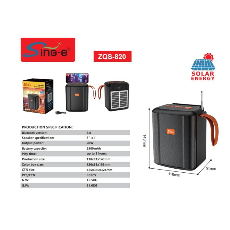 Sing-E Haut Parleur Bluetooth ZQS-820
