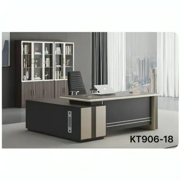 La table de bureau KT906-18, avec des dimensions de 1800x850x750 mm, est conçue pour offrir un espace de travail spacieux et ergonomique. Elle présente un design moderne et épuré qui convient parfaitement aux environnements professionnels. Sa structure solide assure une stabilité optimale et une grande durabilité pour un usage quotidien.
