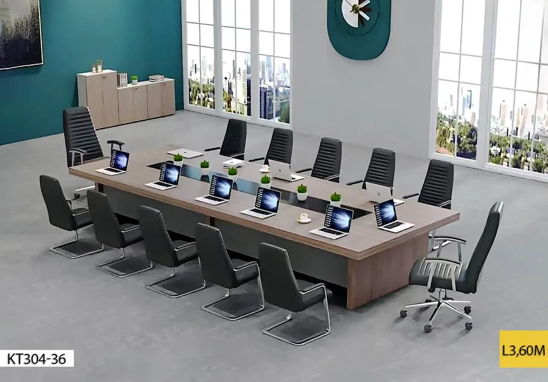 La table de réunion KT304-36 est idéale pour aménager un espace professionnel moderne et fonctionnel. Conçue pour les salles de conférence, bureaux et espaces collaboratifs, elle offre une large surface de travail permettant d’accueillir confortablement plusieurs participants.