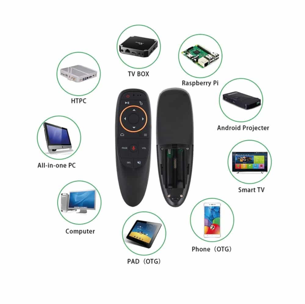 La télécommande Air Mouse est dotée d’un gyroscope à six axes intégré qui détecte la direction et la vitesse du mouvement de votre poignet. Vous pouvez contrôler le mouvement du pointeur de la souris en agitant votre bras et vous n’avez plus besoin de le pointer vers la zone de détection infrarouge du téléviseur. Cette Telecommande prend en charge la saisie vocale et est compatible aux appareils avec systèmes Android, Mac OS, Windows et Linux. Amusez-vous avec votre famille et vos amis !