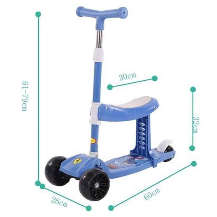 La trottinette enfant 2 en 1 avec siège est idéale pour les enfants de 3 à 8 ans. Conçue en plastique robuste, elle offre une assise confortable qui se transforme facilement en trottinette. Le siège ajustable s’adapte à la croissance de l’enfant pour un usage prolongé.